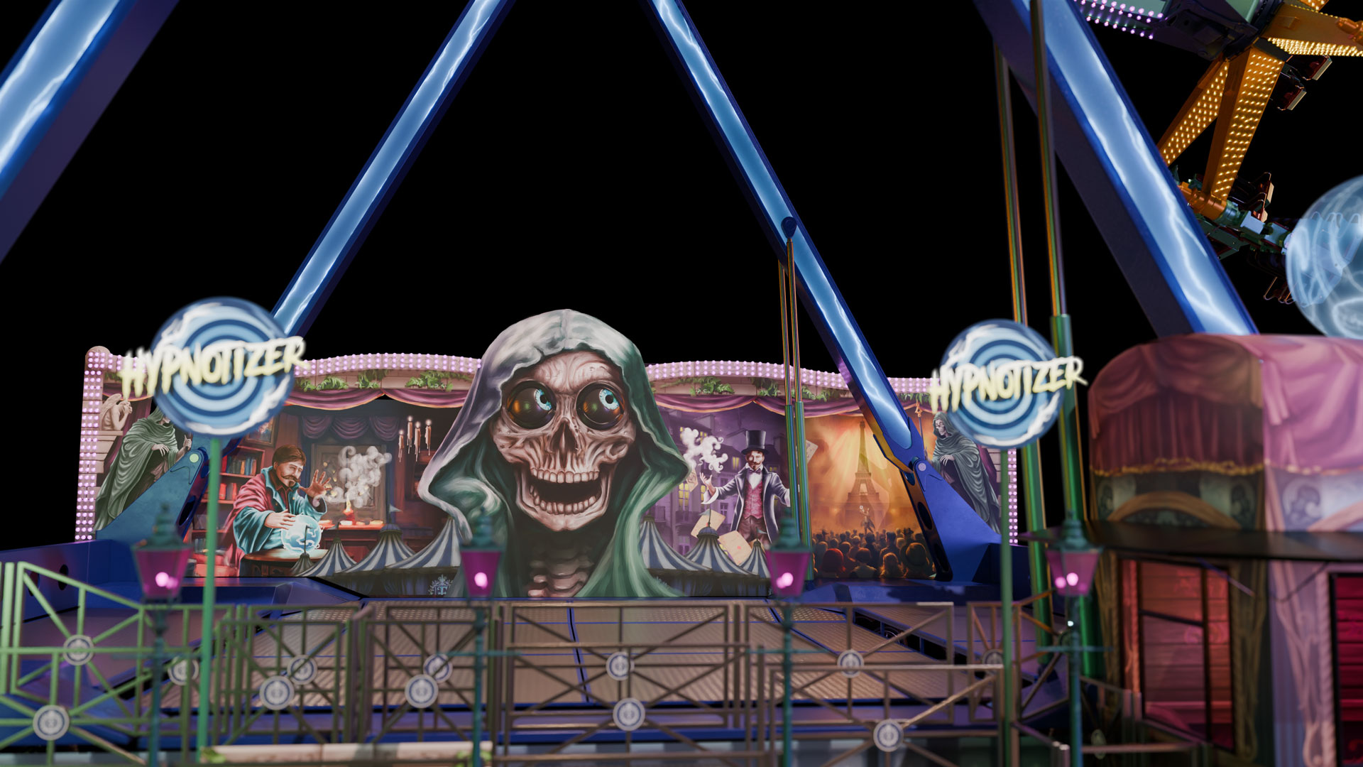 Hypnotizer ist ein spektakuläres Hochfahrgeschäft und deutschlandweit einzigartig – ein sogenannter Pendulum Ride, der nicht nur durch seine Höhe und die frei schwingende Bewegung beeindruckt, sondern vor allem durch seine variable Gondeltechnologie: